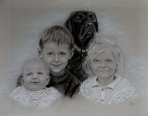 2022Broer en zus A4 Formaat grafiet, houtskool, witte pastel en wit potlood